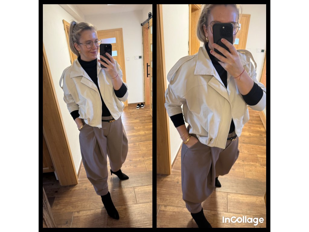 Skvěle se kombinuje jak s kalhotami, tak se sukní nebo šaty — přesně ten typ bundy, který oblékneš a vypadáš upraveně během vteřiny ❤️