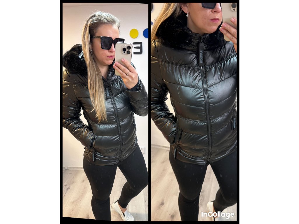 Střih: Prošívaný, přiléhavý střih s kapucí s umělou kožešinou.