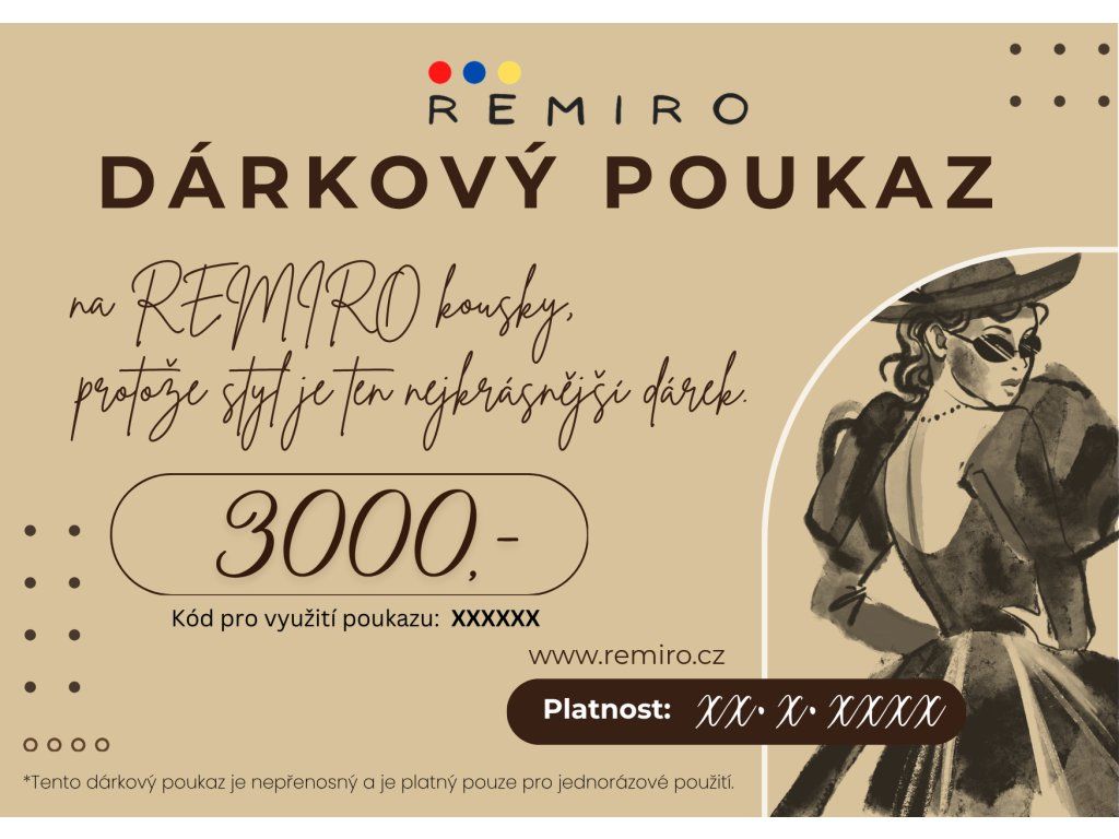 Luxusní dárek pro ženu, která si zaslouží něco výjimečného. Hodnota 3 000 Kč umožní vybrat si více outfitů nebo kombinovat nové kousky do šatníku.
