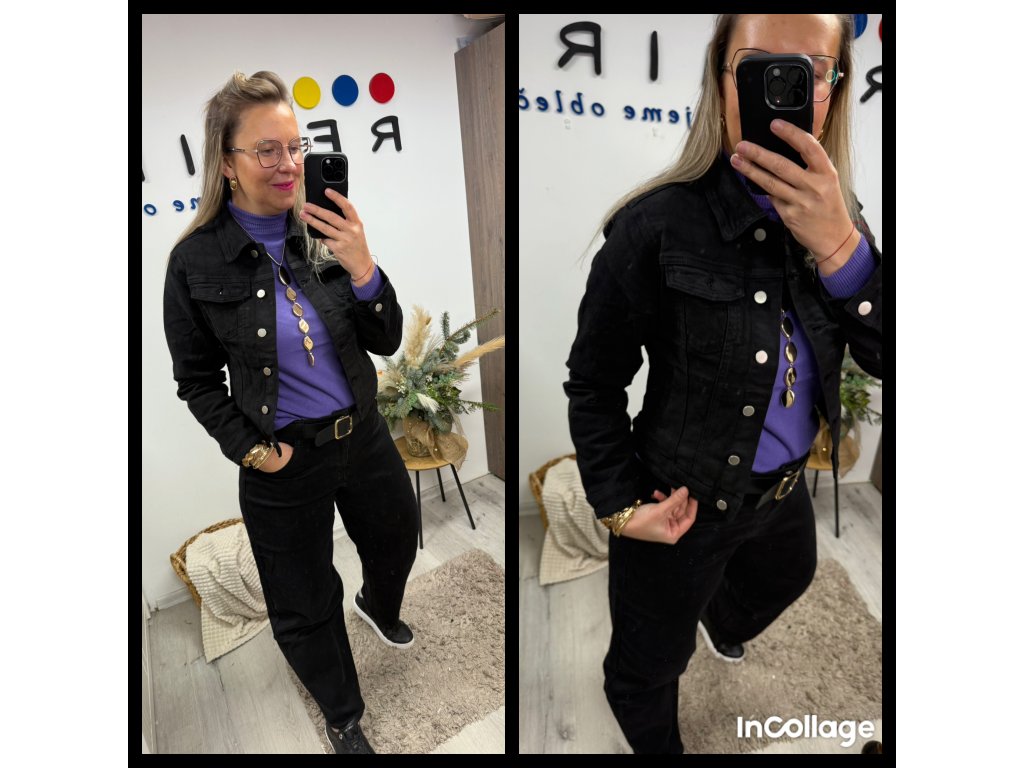 Černá džínová bunda je jeden z těch kousků, který zachrání každý outfit – hodíš ji na šaty, tričko, rolák… a hned to má šmrnc ✨