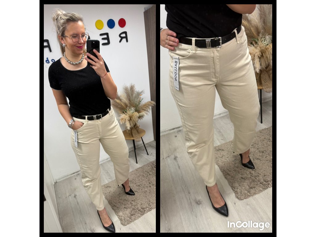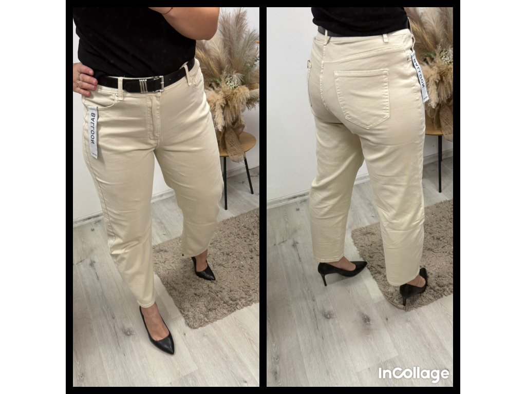 Vysoký pas jemně podrží bříško, nohavice lichotí nohám a džíny se snadno kombinují jak s teniskami, tak s podpatky.