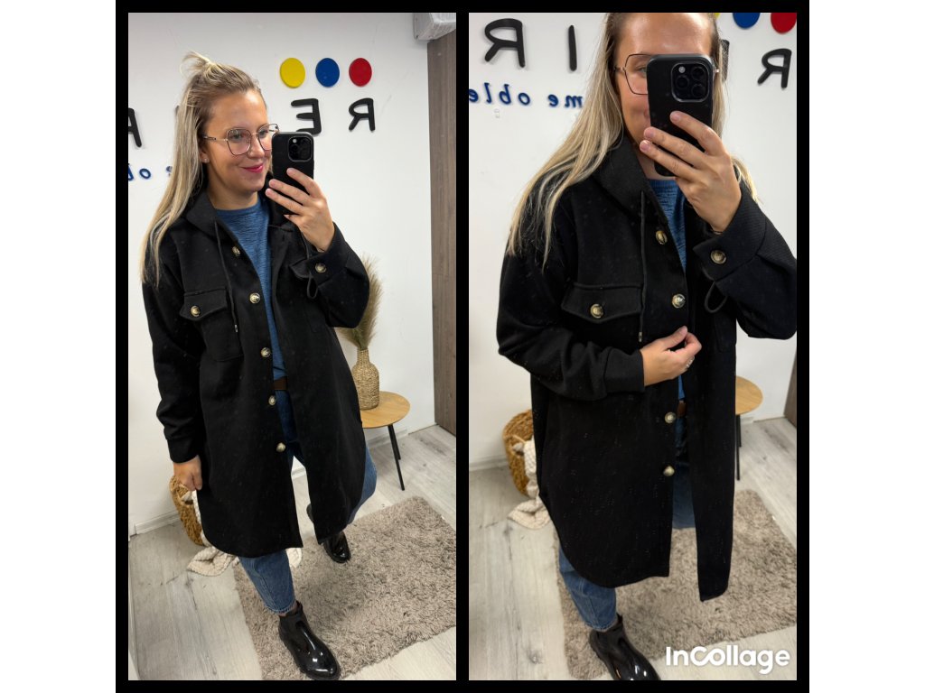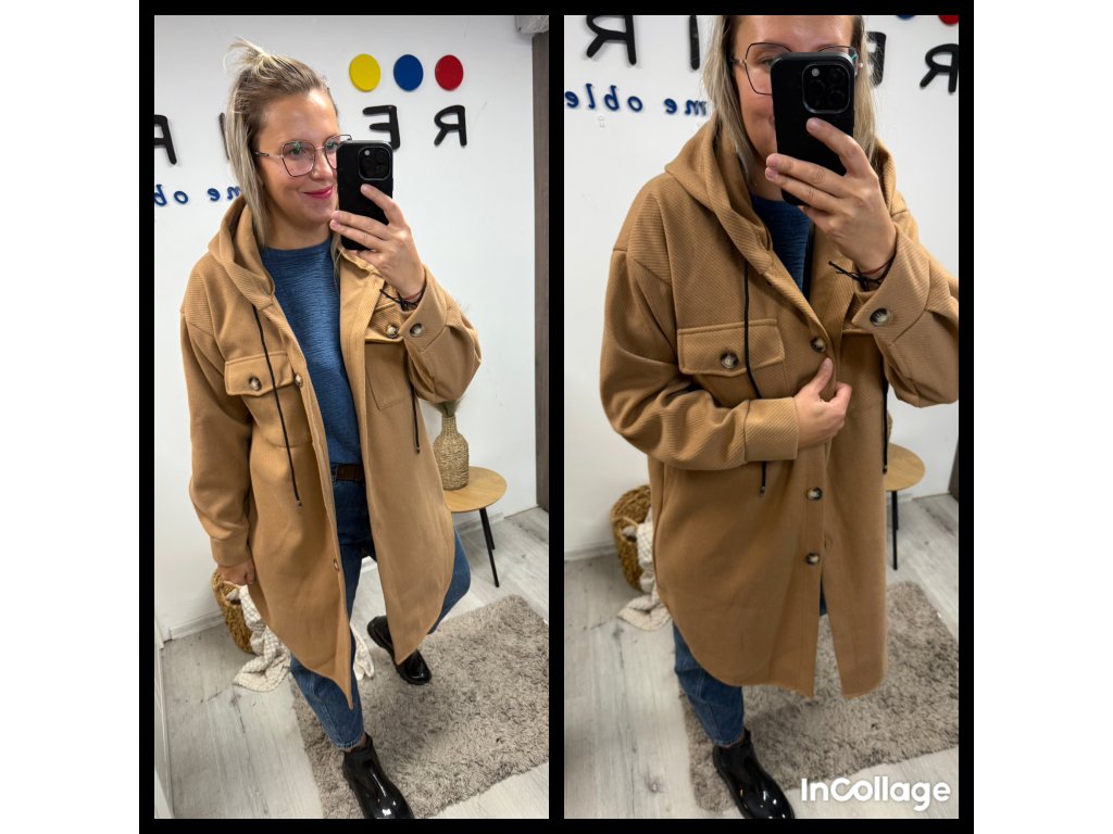 - Střih: Volný, oversized s knoflíkovým zapínáním a kapsami na hrudi.