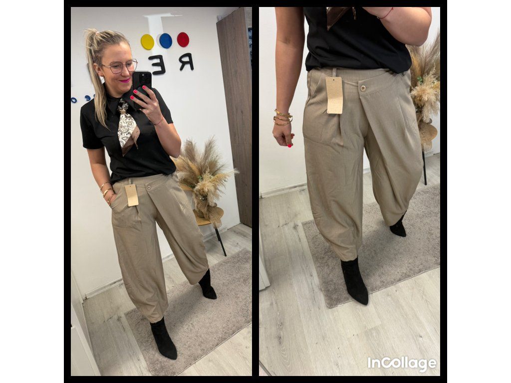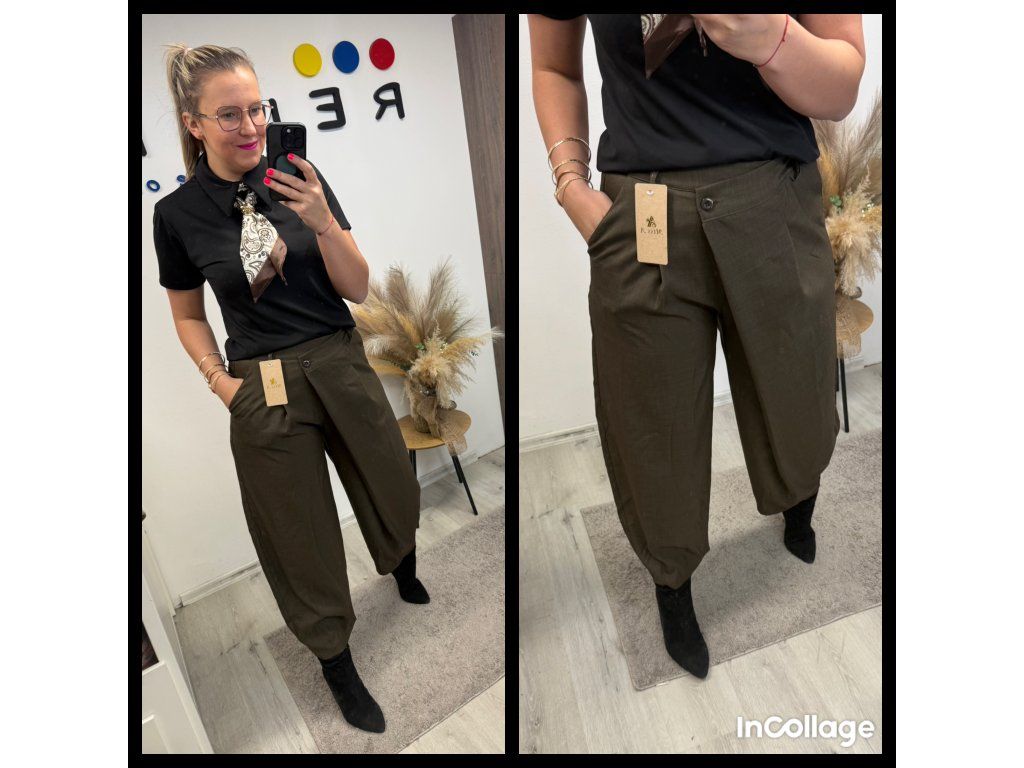 Volnější střih, který neobepíná, ale zároveň díky vyššímu pasu krásně drží tvar. A přesně ten moment, kdy se ti opticky prodlouží nohy a stáhne pas – to je ten efekt, co chceme ✨