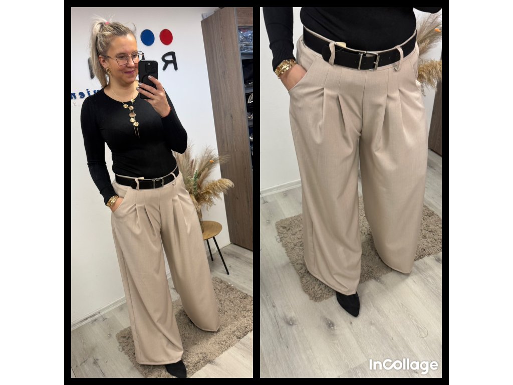 Ten střih je úplně luxusní – vysoký pas, krásně drží bříško, dělá nádhernou siluetu a nohavice jsou široké a elegantní, takže působí neskutečně štíhle ✨