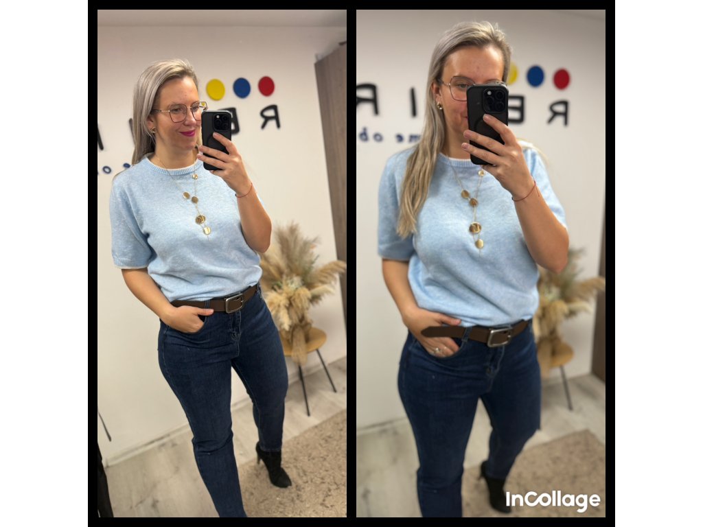 Má ideální délku, takže ho můžete nosit zastrčený do kalhot, volně přes pas nebo lehce podkasaný – vždy vytvoří hezkou siluetu.