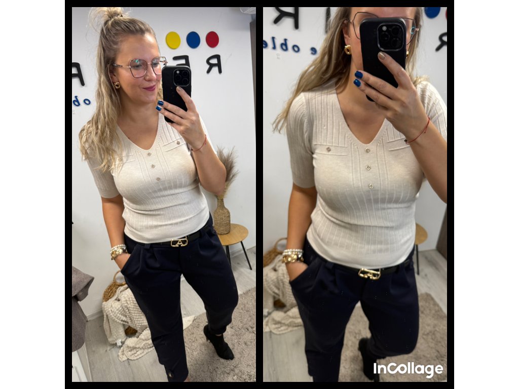💫 Detail: zlaté knoflíky + jemné žebrování = absolutní elegance