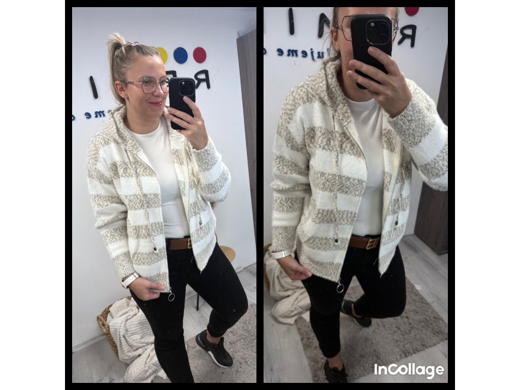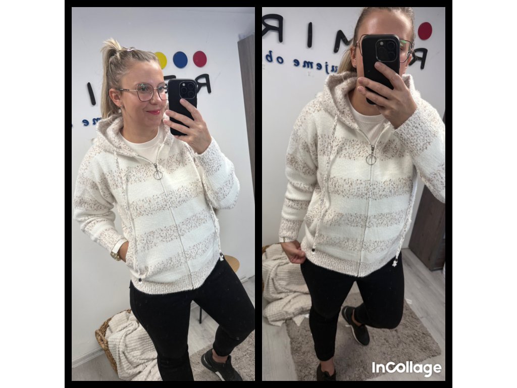 📏 Typ: Dámská mikina na zip s kapucí a kapsami, z hřejivého úpletu.
