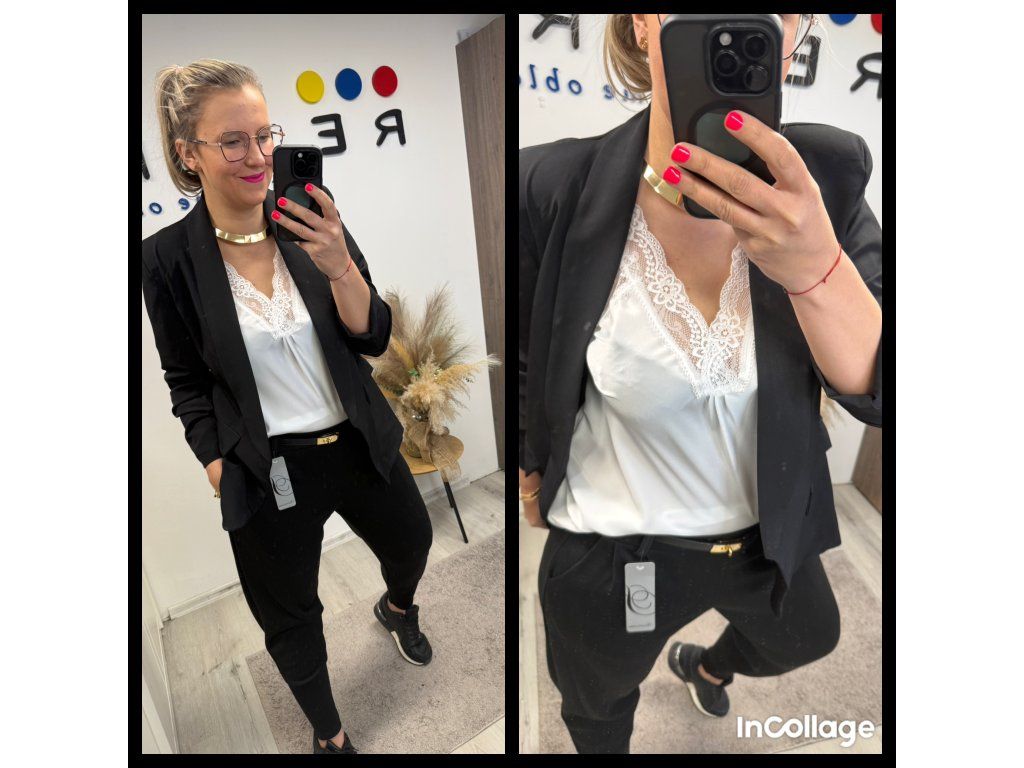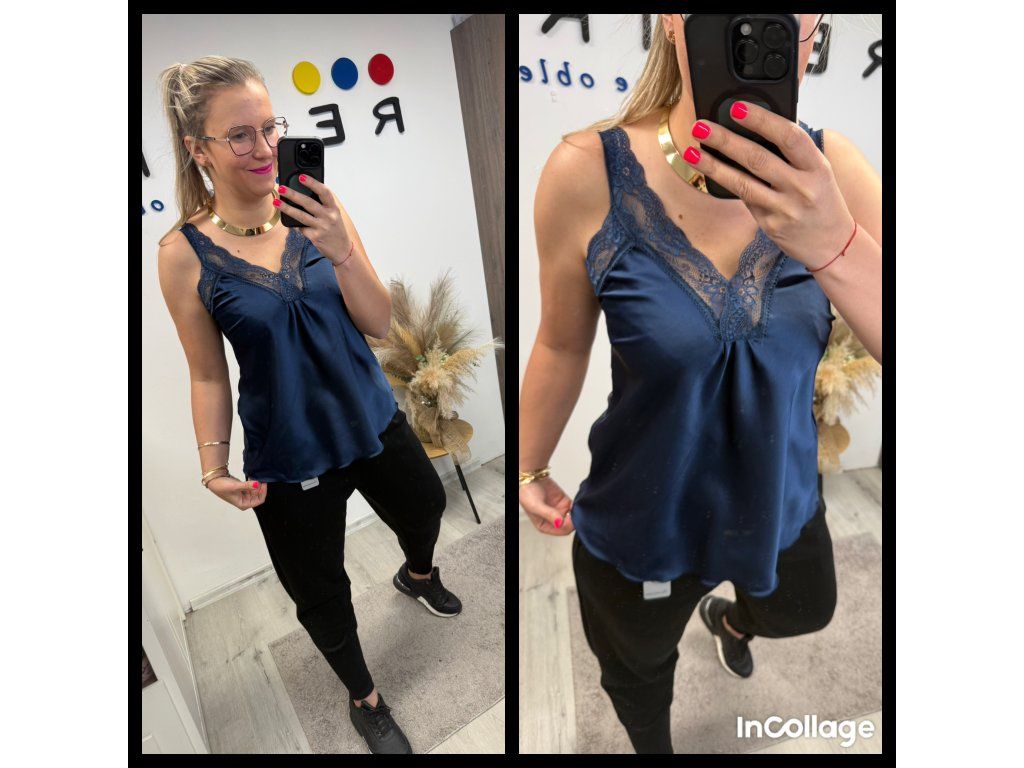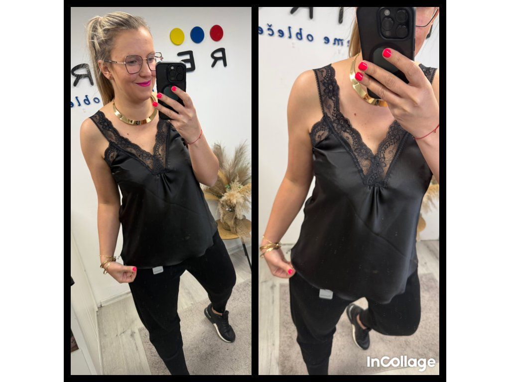 Saténové tílko s krajkou je ten typ věci, co si vezmeš jednou… a pak už ho chceš ke všemu.