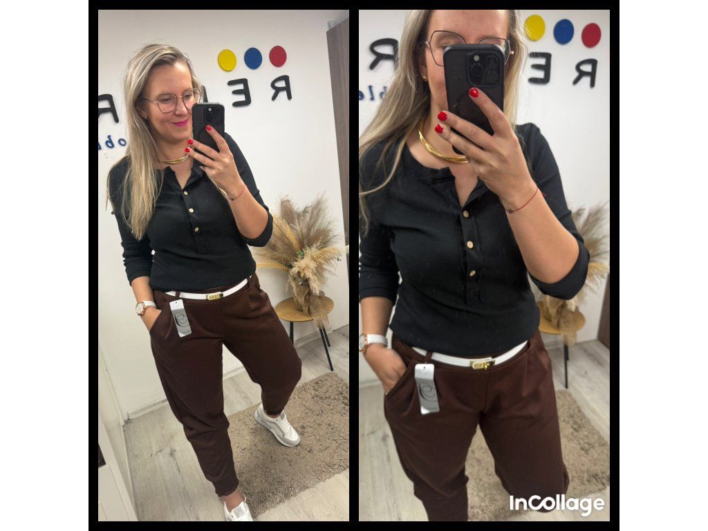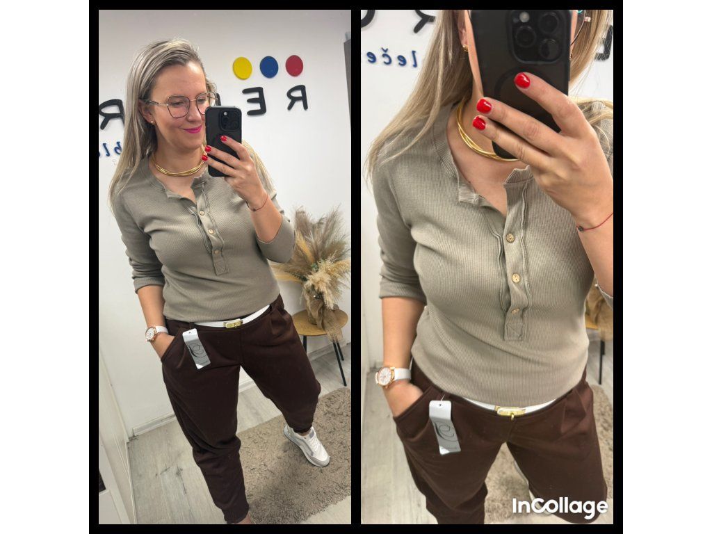 a díky tomu výstřihu s knoflíčky udělá úplně jiný efekt než klasické tričko.