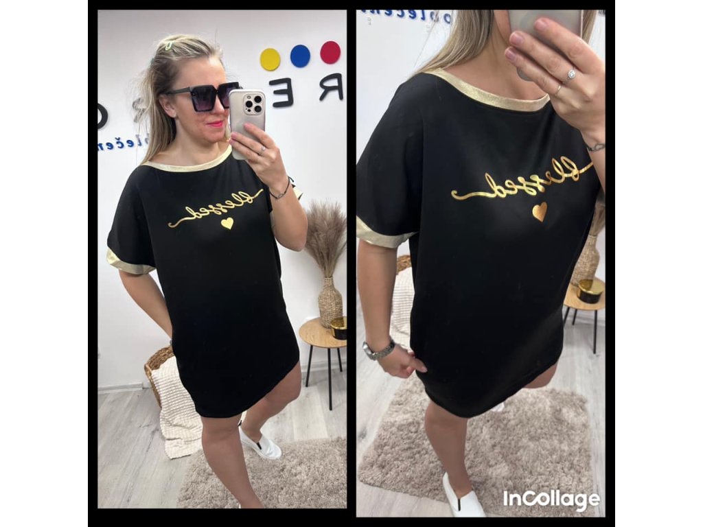 Vzor: Nápis „Blessed“ se srdíčkem ve zlaté barvě